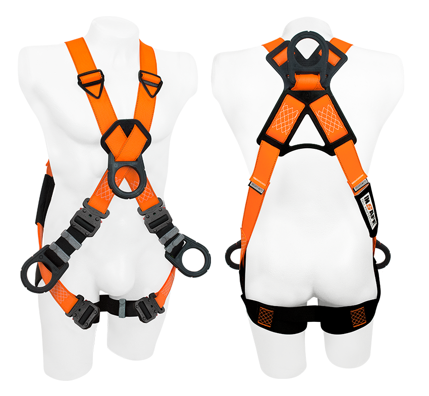 Arnés Recubierto Tipo X de 4 argollas, dos argollas laterales, una dorsal y una frontal con alma de acero recubiertas con polímero de alta resistencia, ideal para soportar la fricción , la oxidación, corrosión y ataques químicos (No es