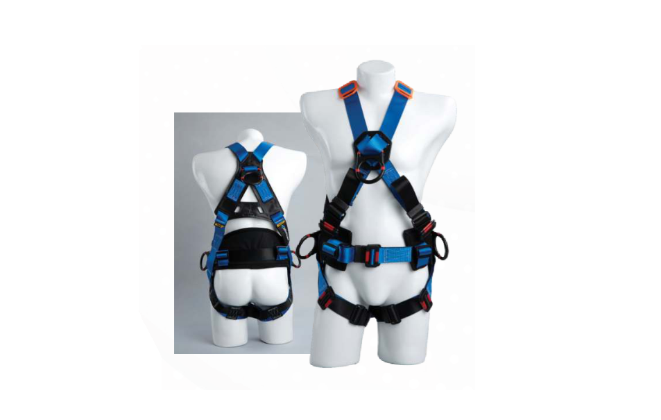 Estilo cruzado 4 argollas Argolla dorsal y frontal recubiertas de 9Kv Argollas laterales recubiertas de 9Kv para posicionamiento Hebillas de traslape recubiertas en piernas y pecho Porta-eslinga
