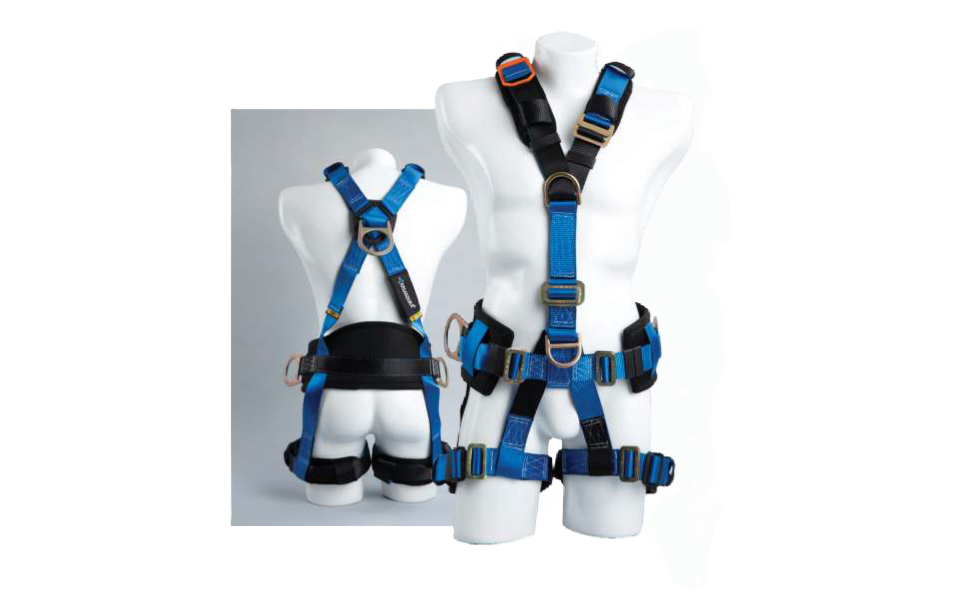 Estilo cruzado 5 argollas en acero forjado Argolla dorsal y frontal Argolla pélvica Argollas laterales Soporte lumbar Pads acolchaTIPO II Hebillas de traslape Porta-eslinga