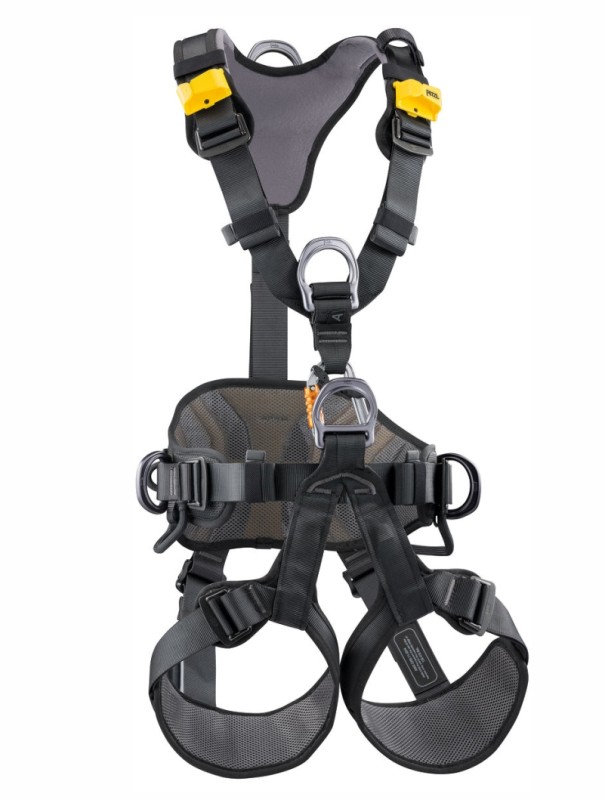 Arnés confortable anticaídas, de sujeción y de suspensión, diseñado para priorizar el confort en cualquier situación. El cinturón y las perneras semirrígidos y anchos proporcionan una sujeción excelente. La construcción ligera y transpirable ofrece muy buena ventilación. Certificación CE EN 358 – EN 361 – EN 813. Marca Petzl.