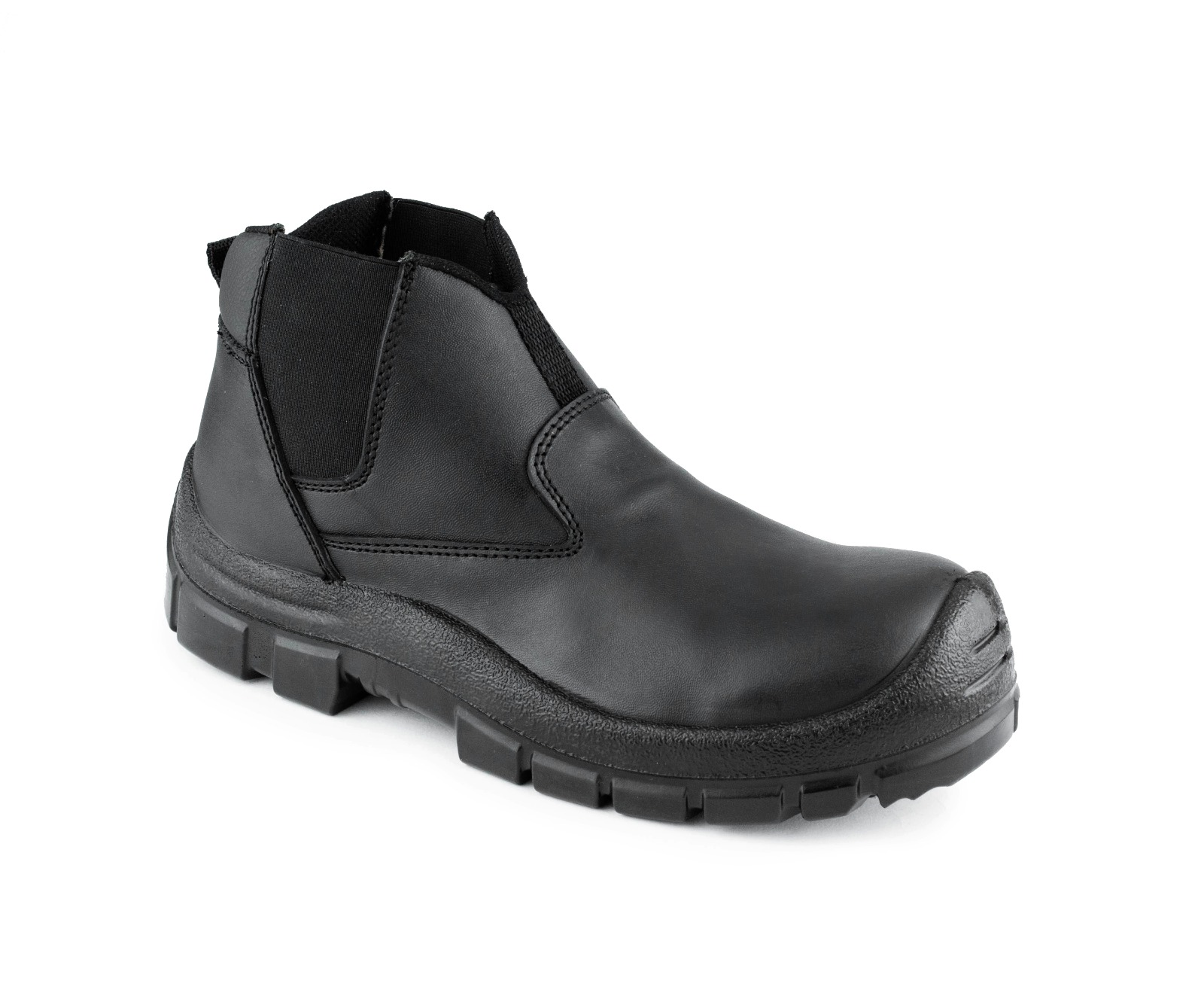 Bota de seguridad negra modelo 6501 sin cordón. Fabricada en cuero mocasín liso con forro textil 100% poliéster. Puntera no metálica (composite) certificada EN12568, plantilla antifatiga en poliuretano, suela inyectada resistente a hidrocarburos, ácidos y dieléctrica. Cumple normas ASTM F2412-18 / F2413-17. Peso aproximado: 1.1 kg. Garantía de 4 meses por defectos de fabricación.