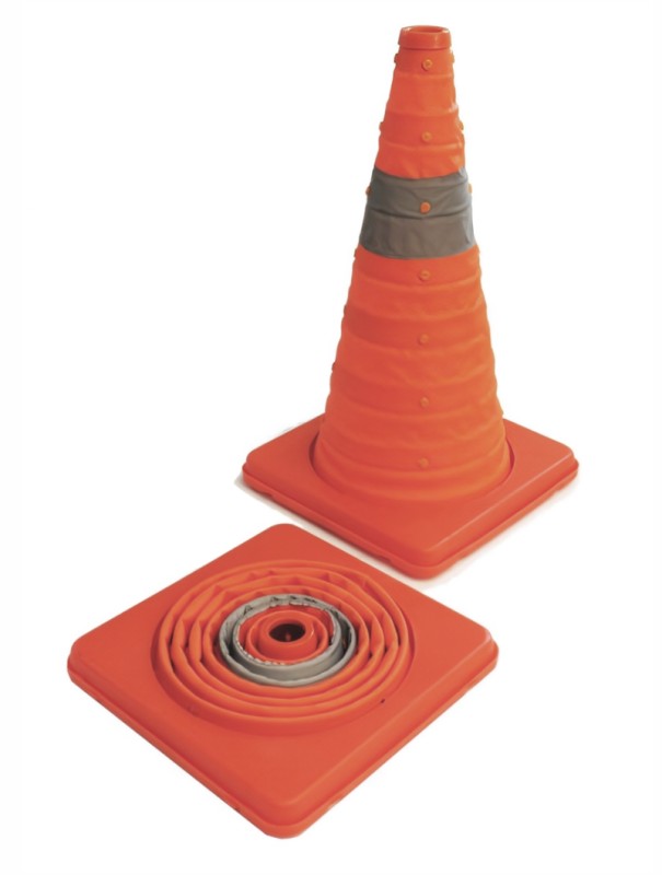 Cono vial retráctil reflectivo, altura 60 cm, presentación por dos unidades. Producto importado.
