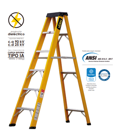 ESCALERA TiJERA 14 PASOS FIBRA DE VIDRIO HORN