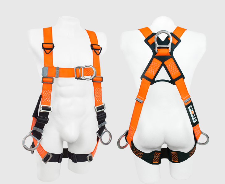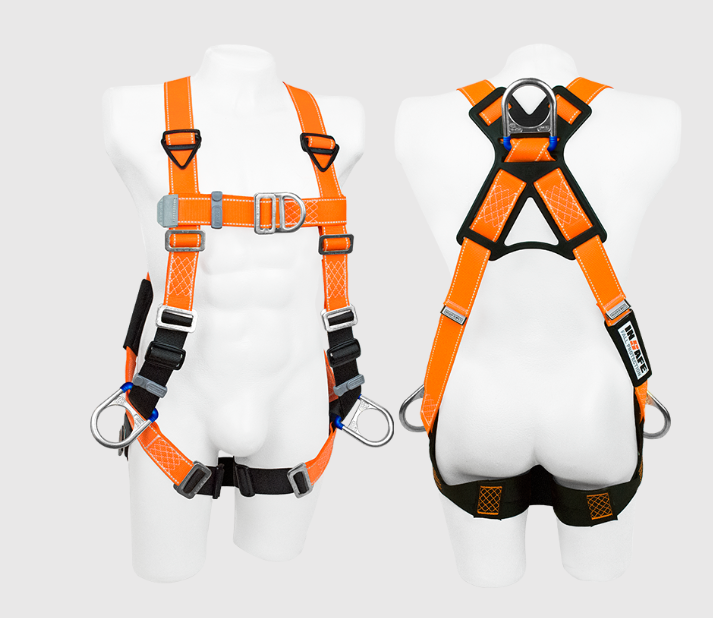 Arnés en H de cuerpo entero en reata polyester REFLECTIVA DE ALTA VISIBILIDAD. 4 ARGOLLAS EN ACERO posee 1 argolla dorsal en “D” para detención y restricción de caídas, 2 argollas laterales en “D” para posicionamiento a un punto fijo y 1 argolla frontal en “D” para ascenso y descenso controlado. SOPORTE LUMBAR CON DISEÑO ERGONÓMICO que minimiza el riesgo en las malas posturas del usuario. REATA REFLECTIVA 400 LÚMENES