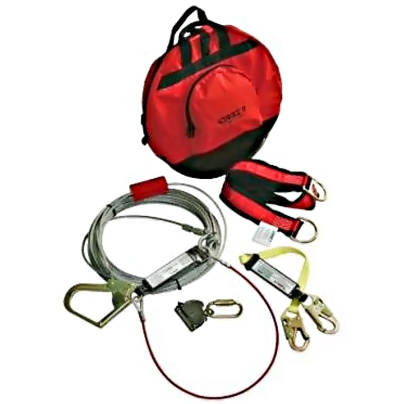 Dispositivo de aseguramiento vertical de 7 metros para escaleras, permite desplazamiento seguro. Cable de acero galvanizado de 5/16 pulg., con tensor de acero inoxidable y absorbedor de impacto. Incluye postes superior e inferior estándar para anclajes. Certificación ANSI Z359.16.