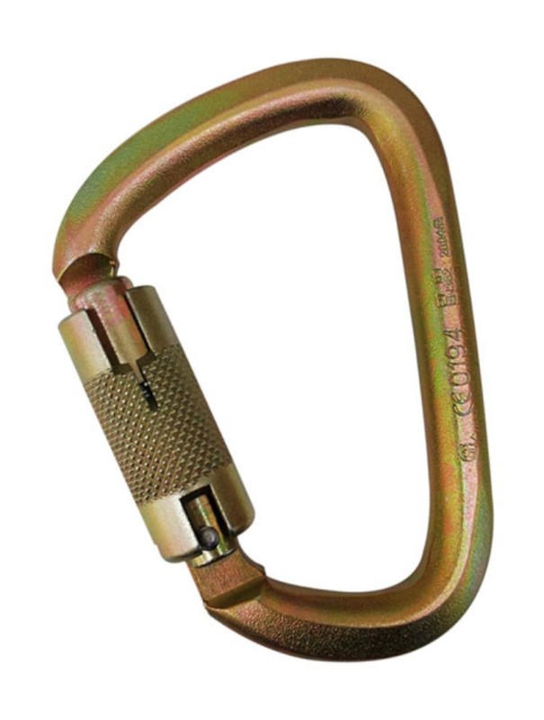 Mosquetón tipo D de acero, seguro automático, resistencia 45 kN. Certificación ANSI Z359.12-2019 / EN 362:2004