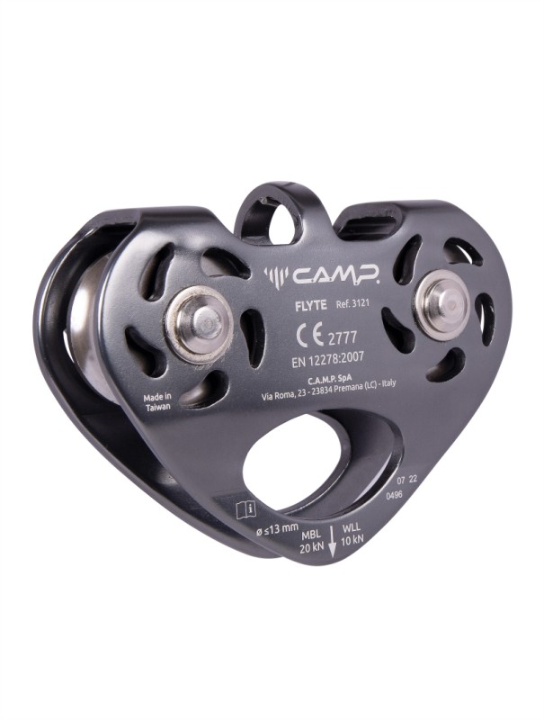 Polea doble multifunción de alta resistencia, para cuerdas hasta 16 mm. Certificación CE EN 12278. Marca CAMP