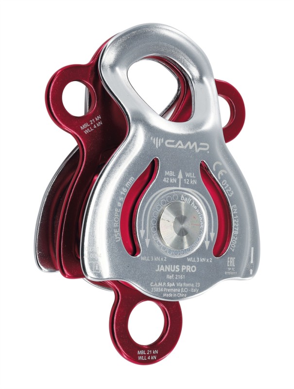 Polea de alta resistencia, multifunción, para cuerdas hasta 16 mm. Certificación CE EN 12278. Marca CAMP