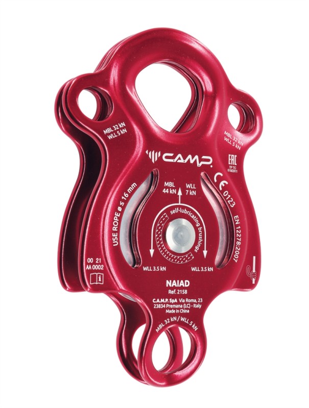 Simple con placas laterales fijas, ultracompacta, para cuerdas hasta 13 mm. Certificación CE EN 12278. Marca CAMP