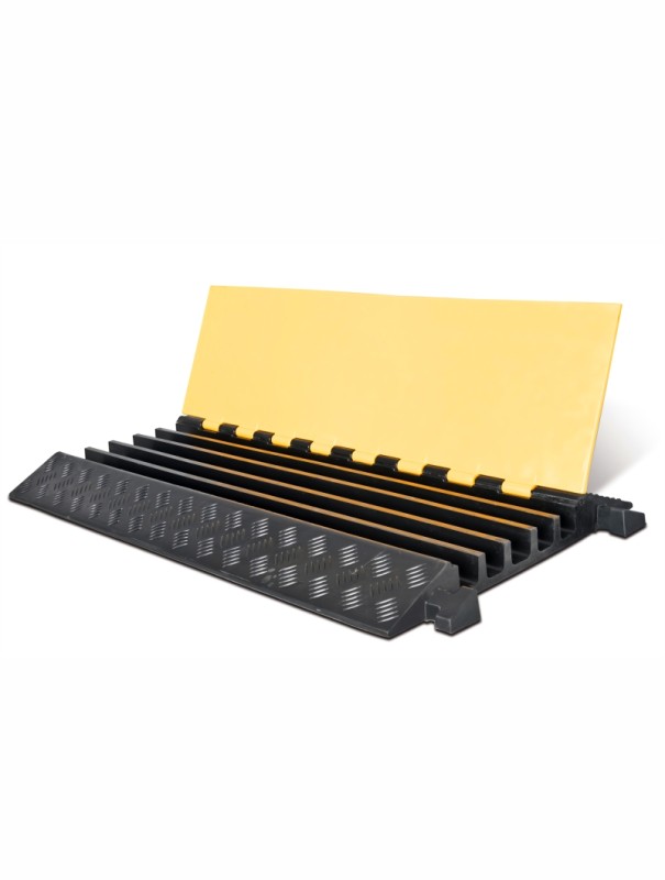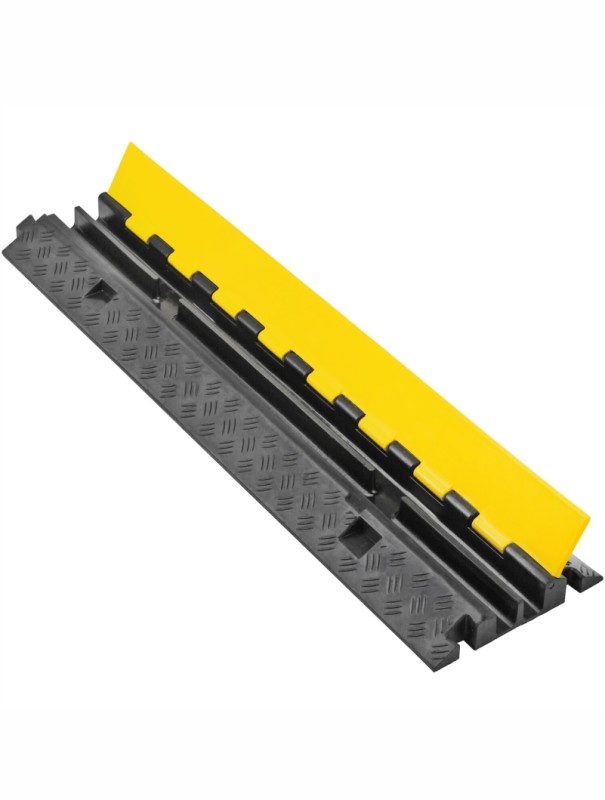 Protector de cables con 3 canales, dimensiones 90 x 50 x 7 cm, resistencia máxima 6 toneladas, peso 15 kg. Producto importado.